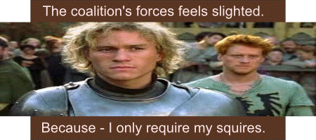 The Black Knight with a light heart moves perplexed.